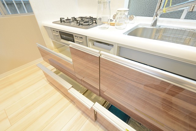 カウンター下の収納は引き出しタイプです。