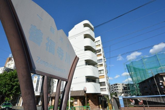 善福寺川沿いに建っています。