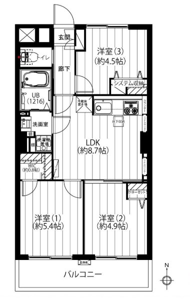 約0.8帖のウォークインクローゼット付です。