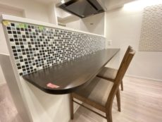 キッチンに設置されたカウンターは食事が出来る程広く、ダイニングテーブルを置く必要がありません。その分リビングを広くとれるわけですね。ちなみに、置いてある家具は全て付いてくるそうですよ。