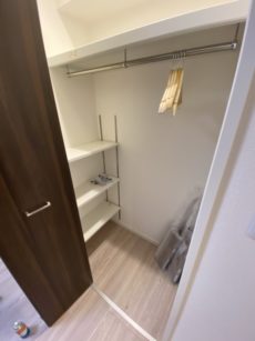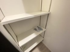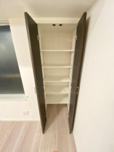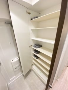 玄関左側にはトールサイズのシューズボックスがあり、その隣にはこれまたトールサイズの収納棚がありました。どちらも可動式の棚のため、自由にアレンジできますよ!(^^)!