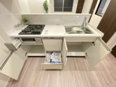 調理台下は収納と食器洗浄乾燥機。食洗機いいですね~♪洗い物はお任せして食後はのんびり過ごしましょう(*´▽`*)
