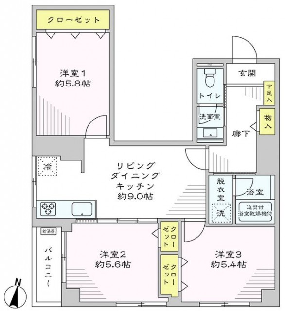 リビングダイニングキッチンの北側には5.8帖の洋室があります。