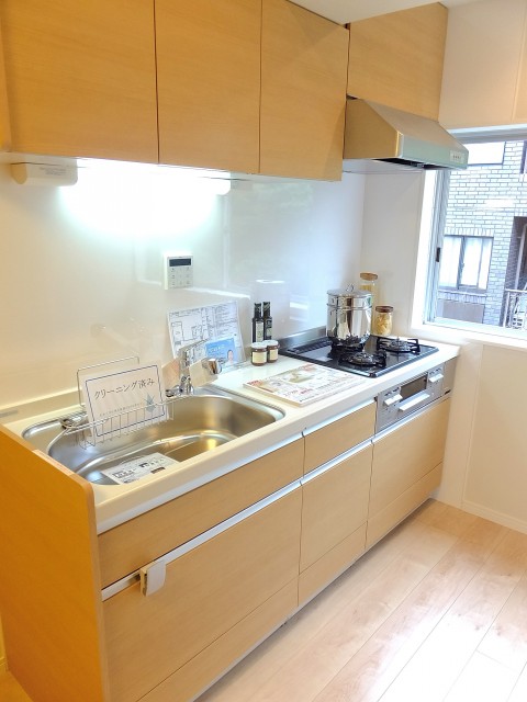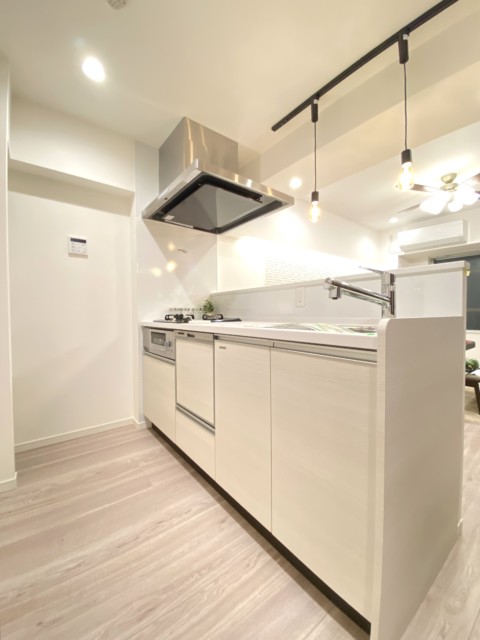 調理台は明るい色のパネル使用で主張し過ぎず、お部屋を広く見せています。