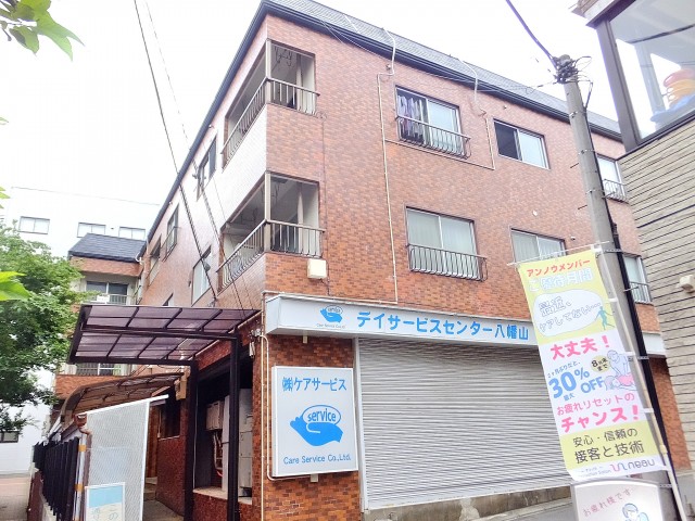 なんとも可愛らしい、ブラウンのタイル貼りの建物で、1階は介護施設やクリニックがテナントとして入っているので、安心ですね~(^v^)