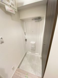 玄関ドア横にはテレビモニター付きインターホンが設置されていて、お部屋の中から訪問者を確認する事が出来ます。ドアスコープもありますが、向こうからも覗かれている気がして怖くありませんか?怖い映画の見過ぎですかね(笑)