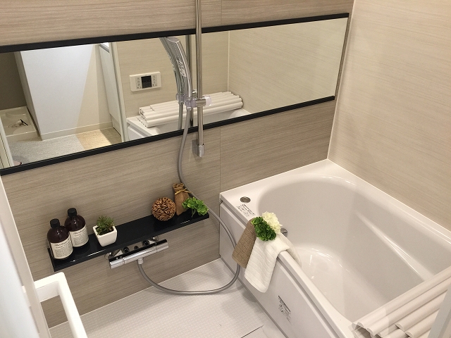 モザイクパターンの床は、すばやく乾燥、楽々お手入れができます☆浴室換気乾燥機能付きと設備も充実。暖房、涼風機能もあるので季節をとわず快適なバスタイムをお過ごしいただけます。
