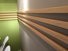 バスルームは、やさしい風合いの木調のパネルにブラックのラインがアクセント☆ゆっくり大きなバスタブにつかって疲れを癒せそうです♪♪追い焚き機能付きでいつでも暖かいお風呂に入れます。