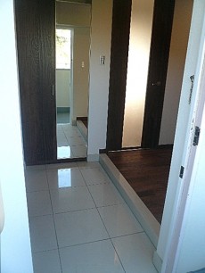 ドアを開けますとお部屋に続いている廊下は、玄関入って左になっていますので、