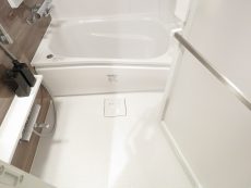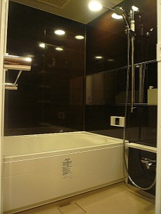 浴室乾燥機付き浴室です。これからの寒い季節や湿気の多い梅雨の季節などには大活躍な浴室乾燥!カビ防止にもなりますね。濃いブラウン使いの浴室パネルはシックな雰囲気、目を閉じて~リラックスしてお風呂に入れそうです。