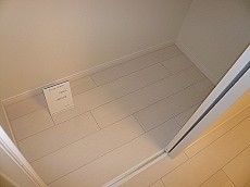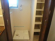 木目調の扉をあけると窓から光が射し込むこちらのスペース、洗濯機置き場です。