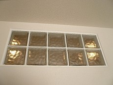 大きなソファーを置いても大丈夫そうな広々とした寛げるリビングは家族団らんな時を過ごせそうですね。キッチン側のクロスの上の部分にはオシャレなブロックガラスがありアクセントになっています!