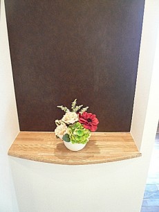 最初に目にしたのがこちらのニッチカウンターです。季節のお花や行事ごとに小物を飾ったりと目を引くスペースの一つになりそうです。