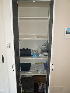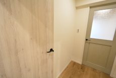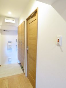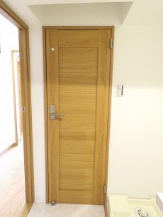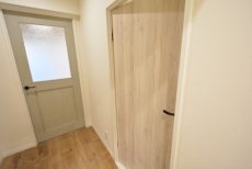 左の扉はリビング・ダイニング・キッチンへ、右側にはトイレ またまた収納があります。