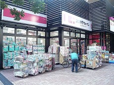 通りにはスーパーやファーストフード、ドラックストア、飲食店が建ち並んでいます。