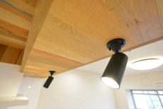 キッチン側はダウンライトに加えダクトレールにスポットライトがついています。窓から少し距離があっても空間全体が明るくてグーです。