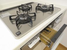 浄水器一体型シャワー水栓、グリル、3口コンロと設備も整っています。