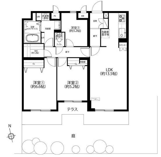 約31.92㎡の専用庭(テラス含む)がついているのでガーデニングなど庭いじりも楽しめます。