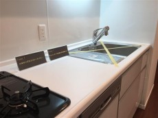 3つ口コンロは、大きめシンク&人造大理石トップと使い勝手◎