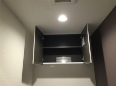 お隣はウォシュレット付きのトイレです。上部には、扉付の収納棚があるので、ストック品の収納も完璧です♪♪