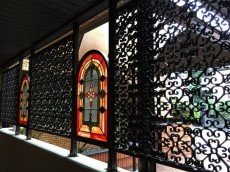 共用部分には、おしゃれなレリーフ&ステンドグラスです。外廊下のステンドグラスは、外からの光でステキな雰囲気を演出します♪