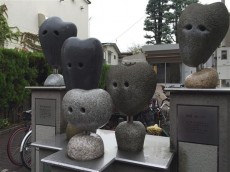 マンションへは経堂農大通り商店街を通って行きます。商店街のところどころに気になるハート型の方たち(?)がいますが、これは経堂を見守るモニュメント、ハートフルファミリーです。祖父の時代から商店をやっていてその昔はこの地で代々農業に従事してきた家系、という設定のようです。ほのぼのしますね。