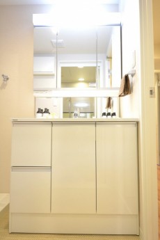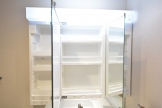 洗面化粧台の3面鏡の裏は一面が収納になっています。