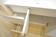 洗面化粧台には鏡裏収納や引き出し収納がありとても便利です!