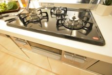 3口コンロに浄水器一体型水栓と機能も◎。お料理の支度もはかどりそうです!