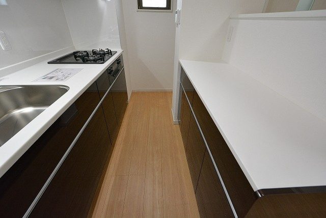 キッチンはⅠ型と呼ばれてるタイプです。壁に向かって調理スペースがまとまっていますね!