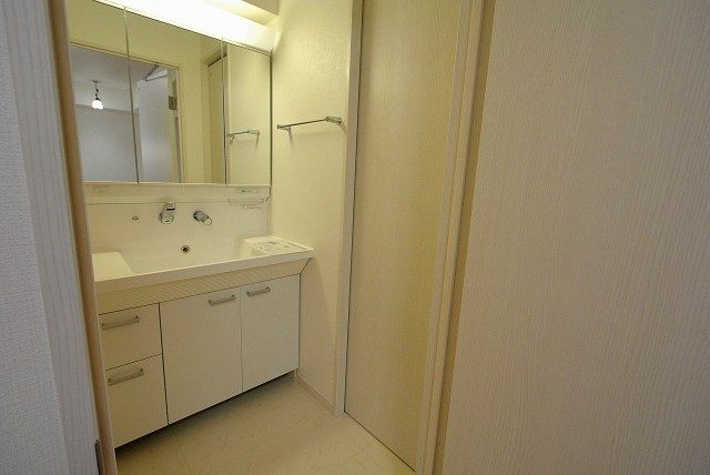 シンクの両サイドはドライスペースとして広めにとってあります。お化粧時などに小物の仮置きスペースとして重宝しますよ。