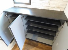 シューズボックスは2つあります。高さの調節が可能なのでブーツなどの背の高い履物でもしまえますよ!!