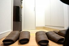 玄関にはカメラ付きインターホンが設置されていて、お部屋の中から訪問者をチェック出来るようになっています。