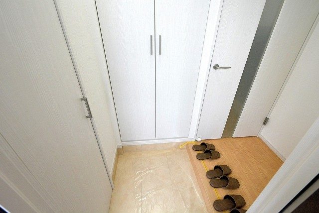真っ白でスッキリとした玄関ですね。ドアはダブルロックでしっかりと守られています。