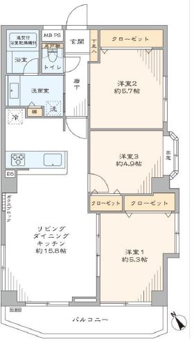 バルコニーの外は住宅に囲まれていますが、高い建物はないので陽射しはしっかり届きそうです。静かで快適な毎日が送れそうですね(´▽`*)