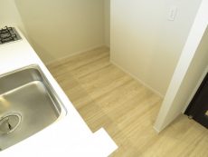 入って右側がキッチン、左側がリビング・ダイニングになってます。
