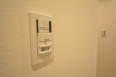 人感センサーがついており、人の気配で自動で照明が消灯するようになってます。消し忘れがなく経済的ですね。インターホンは来訪者の顔が確認できるTVモニターがついています。