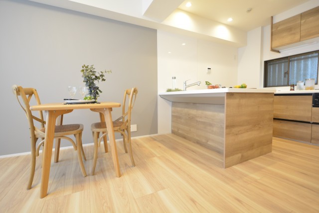 キッチンはコンロ部分とシンク部分がセパレートになったカウンターキッチンです。作業スペースが広く、みんなでお料理とかも楽しそうですね。