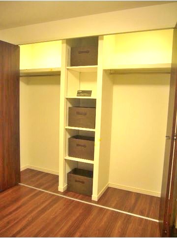 南側には「システム収納」があります。クローゼットが両サイドに分かれた形になっているので、ご主人の服と奥様の服を分けて収納しておけますね(^_^)/