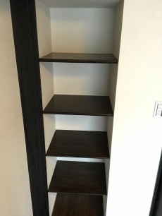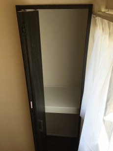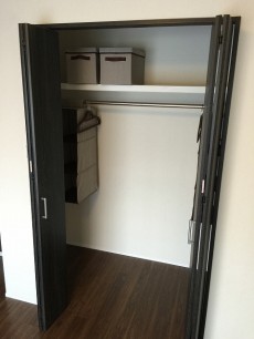 お部屋西側には、収納棚・大きめのクローゼットと収納が充実しています。バーも設置されていて、丈の長いお洋服でもキレイに収納できます♬