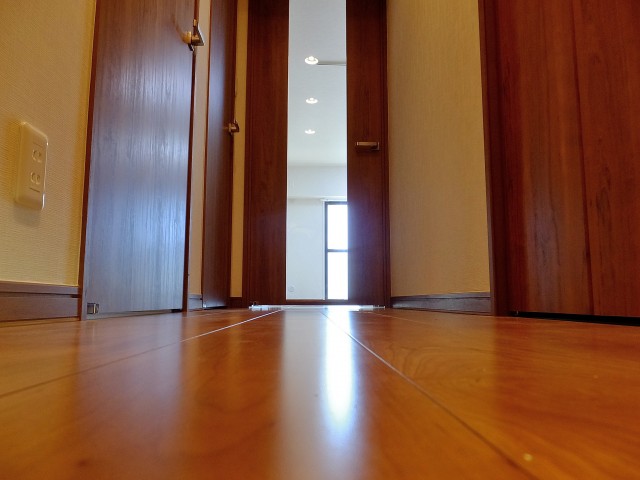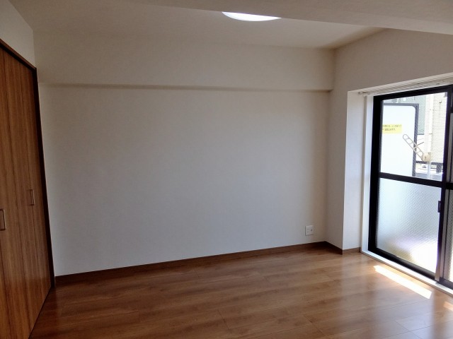 廊下の左側には洋室があります。外の廊下に面した壁に窓があるので、明るい陽射しが入ってきていました。窓とは逆の壁にはクローゼットが付いています。奥行きのあるクローゼットなので、旅行バッグ、ゴルフバッグも楽々収納できちゃいますね(^o^)