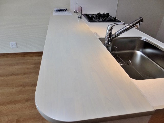 浄水器付水栓、3口コンロ、たっぷり収納に、浴室の追い焚きリモコン。