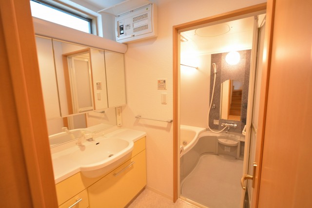 その奥がバスルームです。南向きの窓が明るい陽射しを運んでくれます。