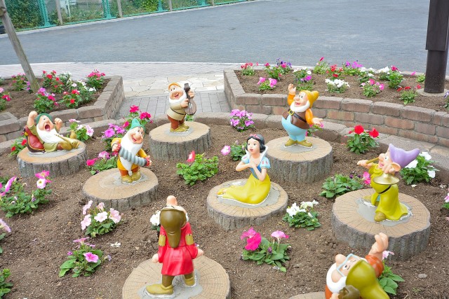 交差点には綺麗な公園がありました☆遊具は置かれていませんが、入口に白雪姫と七人の小人が☆