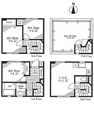 3階建ての3LDK、屋上ルーフバルコニー付の75.30㎡