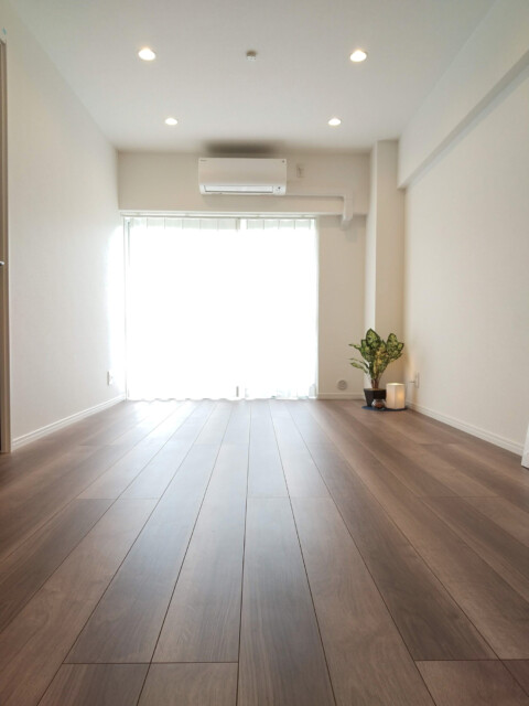 南西向きバルコニーに面した明るいお部屋です。廊下と同じシンプルな色使いで、カーテンや家具なども合わせやすそうですね。