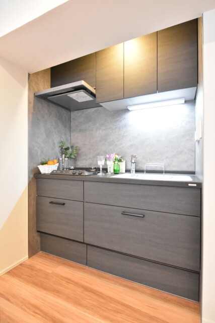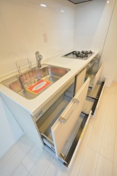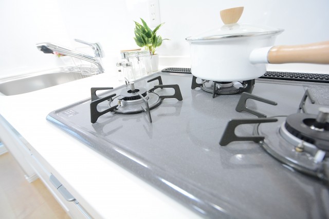 2口ガスコンロでグリルは付属していません。本格的に料理に取り組みたい人には少し物足りないかも(;´∀`)