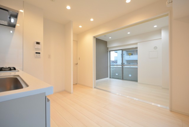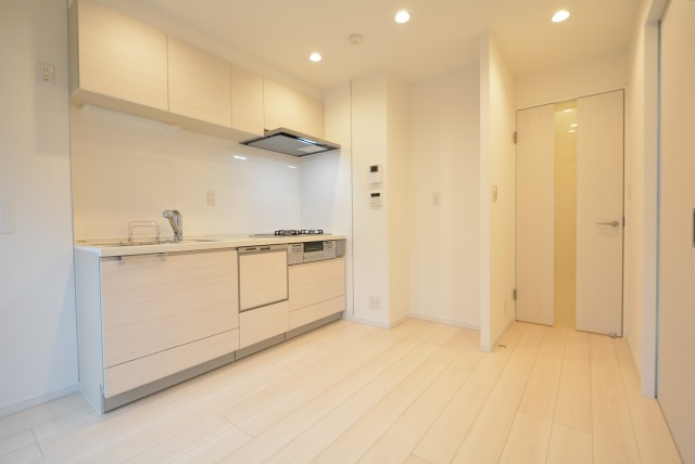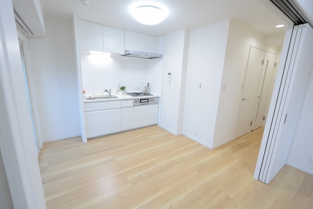 扉をあけると少し通路のような形になっており、その奥にダイニングキッチンがあります。