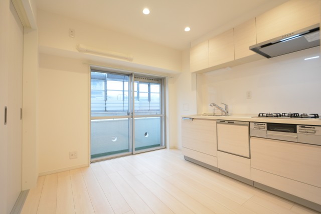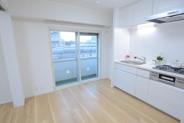 ダイニングキッチンは南東向きの窓から陽ざしがさしこむ明るい空間☀