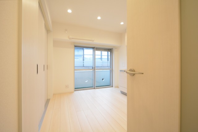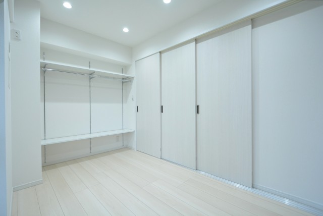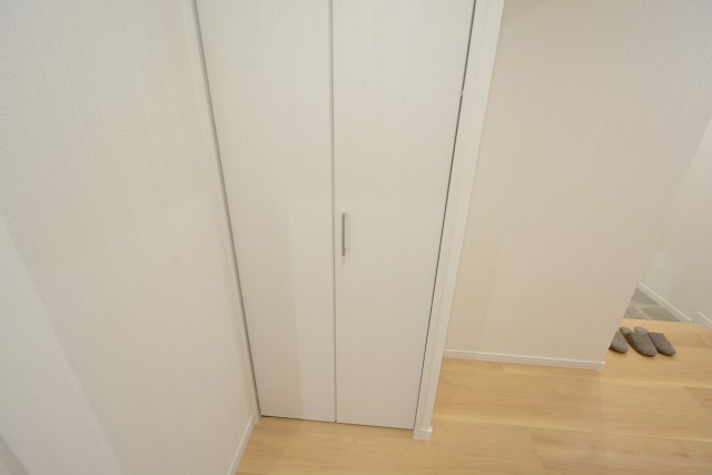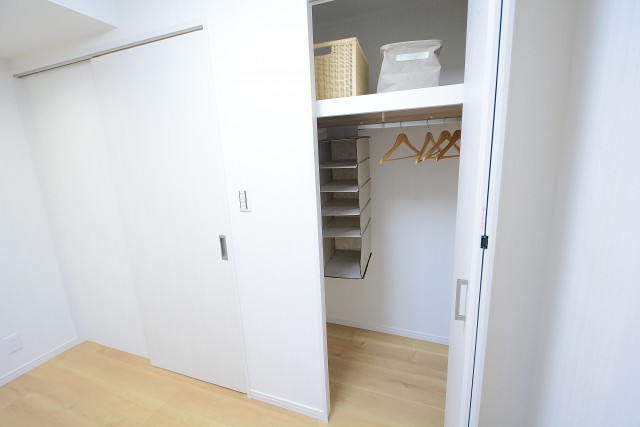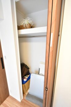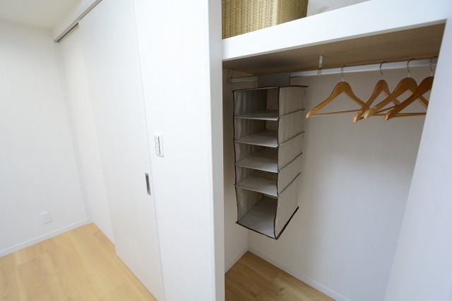 クローゼットもあります。日々の暮らしに必要なものを仕舞っておくのにちょうど良い大きさではないでしょうか。あ!奥の壁はクロスの色が違いますよ。